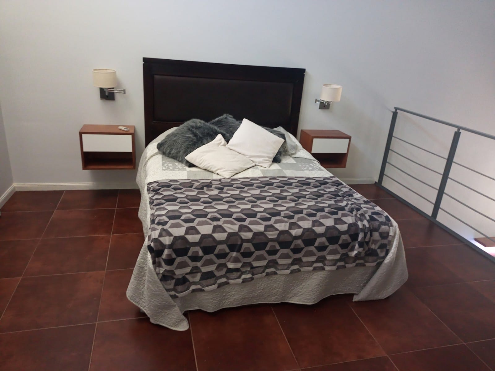 Mesas de luz realizadas en melamina Cedro Nature y Blanca.