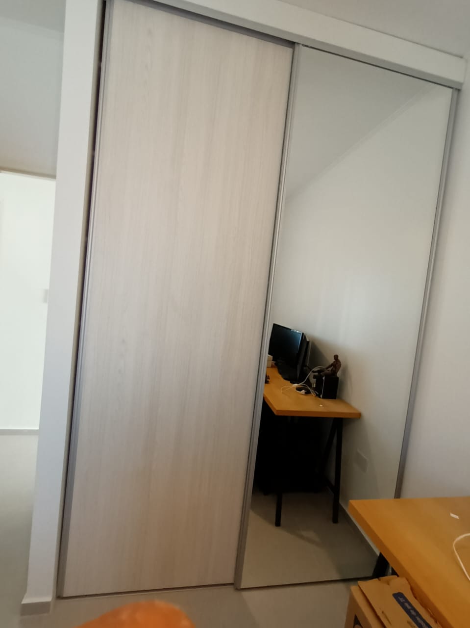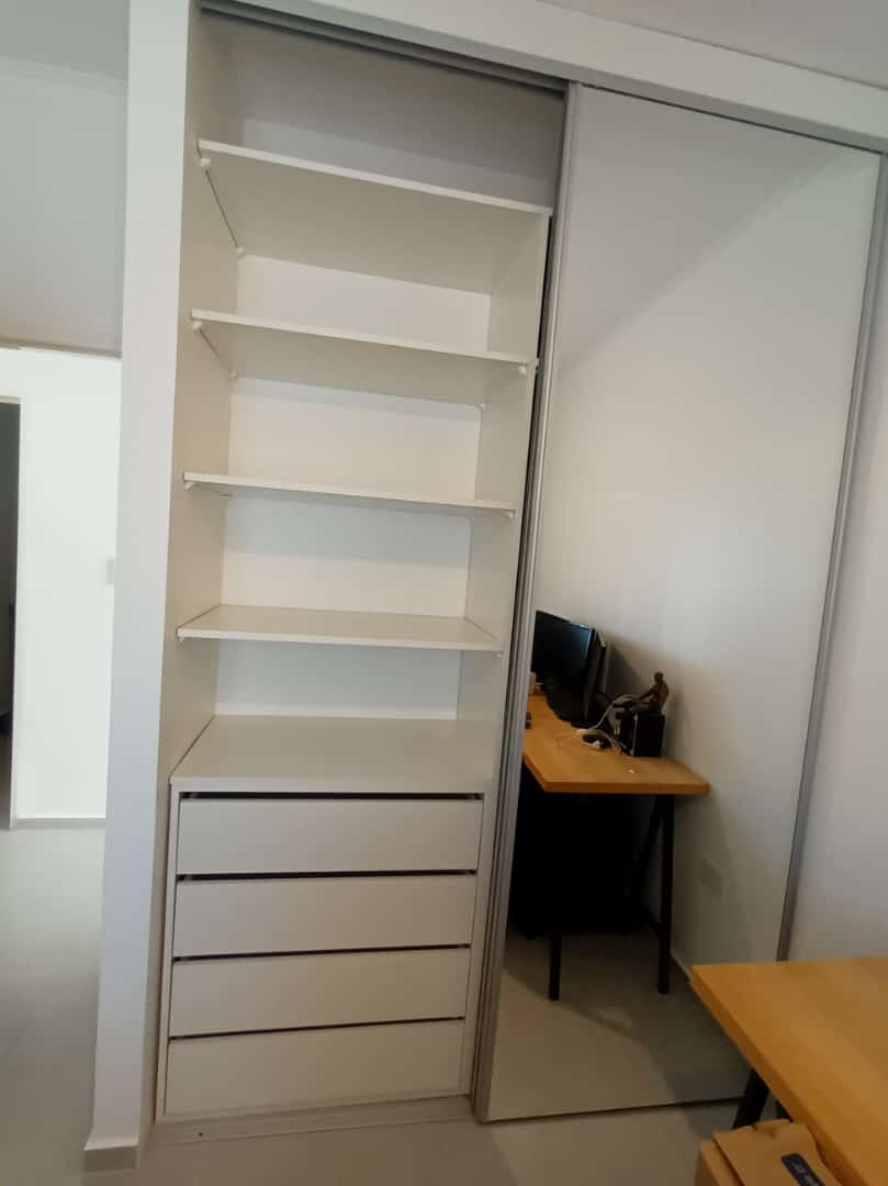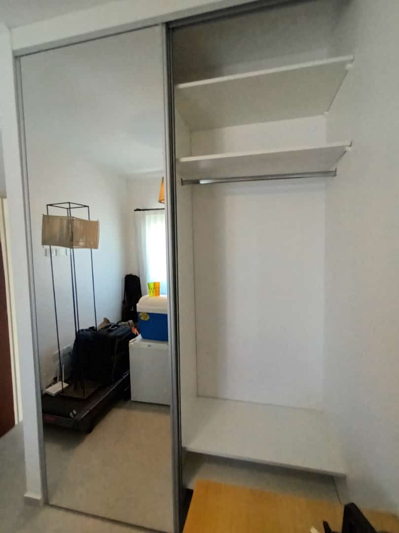 Placard con interior realizado en melamina Blanca y puertas en melamina Teka Artico y espejo.
