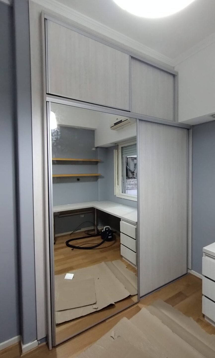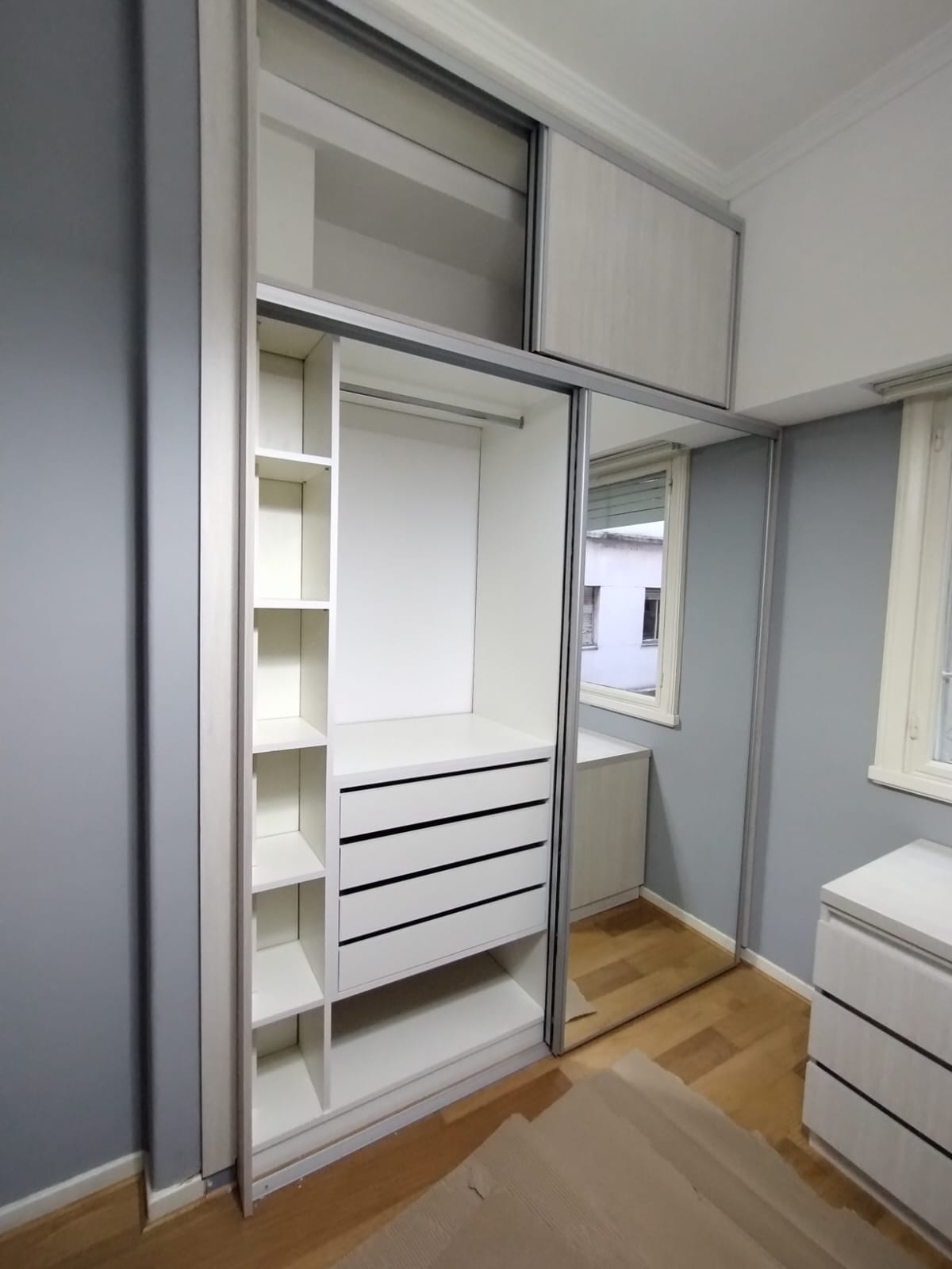Placard con interior realizado en melamina Blanca y puertas en melamina Teka Artico.