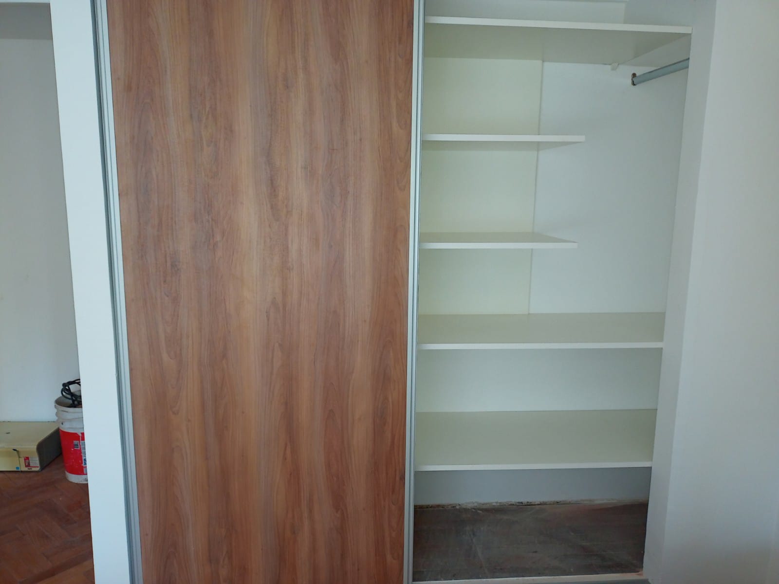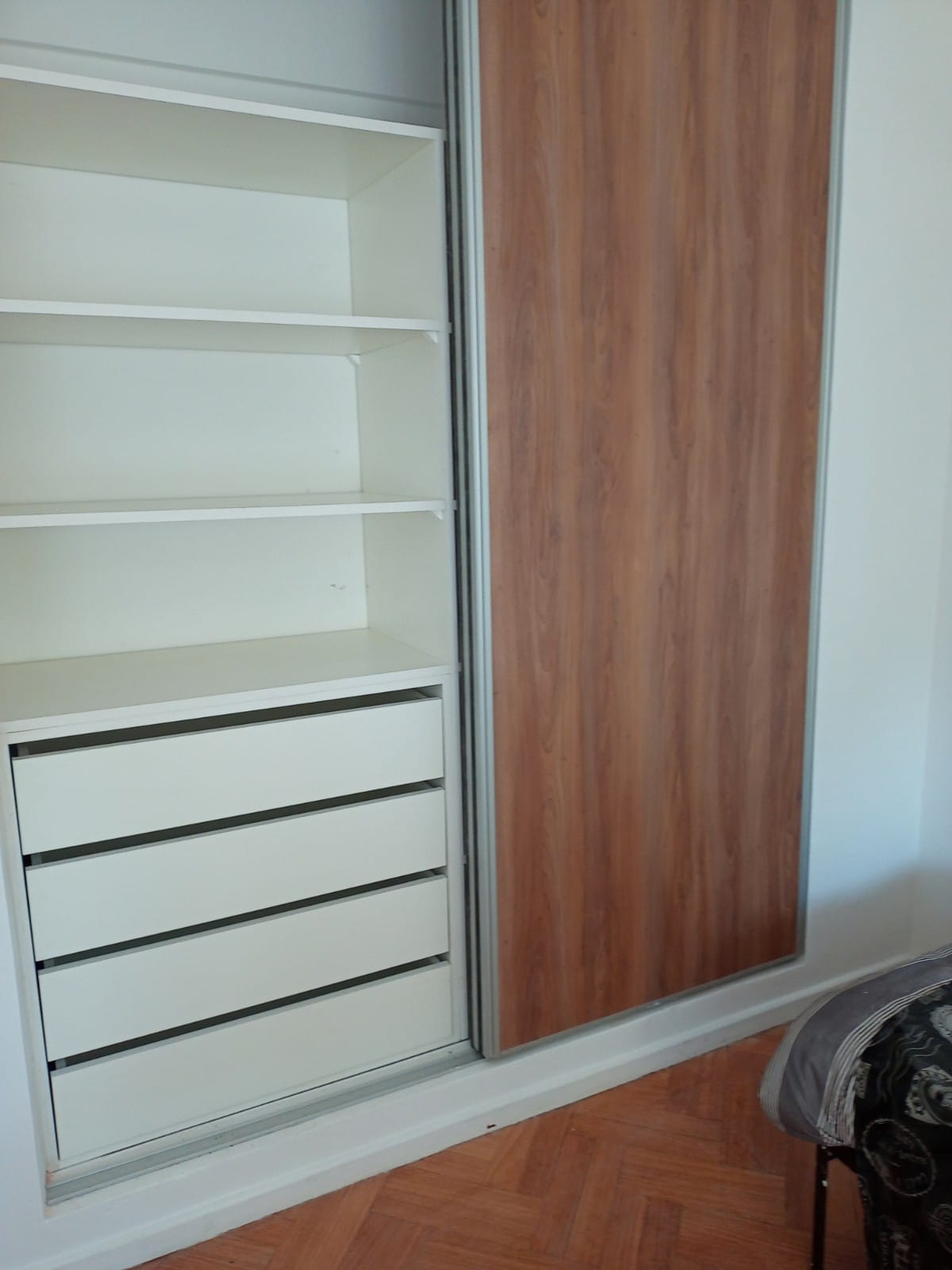 Placard con interior realizado en melamina Blanca y puertas en melamina Scotch.